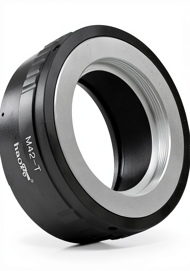 The Haoge M42-T adapter is a precision manual lens adapter designed to connect M42 42mm screw-mount lenses to Leica and Panasonic L-mount cameras. It features a compact, durable metal construction with precise machining to ensure secure lens mounting and alignment. This adapter allows photographers to utilize a wide range of vintage M42 lenses, offering a gateway to unique optical characteristics and creative possibilities. With no electrical contacts, it maintains a purely mechanical connection, requiring manual control over exposure and focus settings. The adapter is lightweight at 113 grams and has compact dimensions of 7.87 x 7.62 x 3.56 cm, making it easy to carry and use in various shooting scenarios.